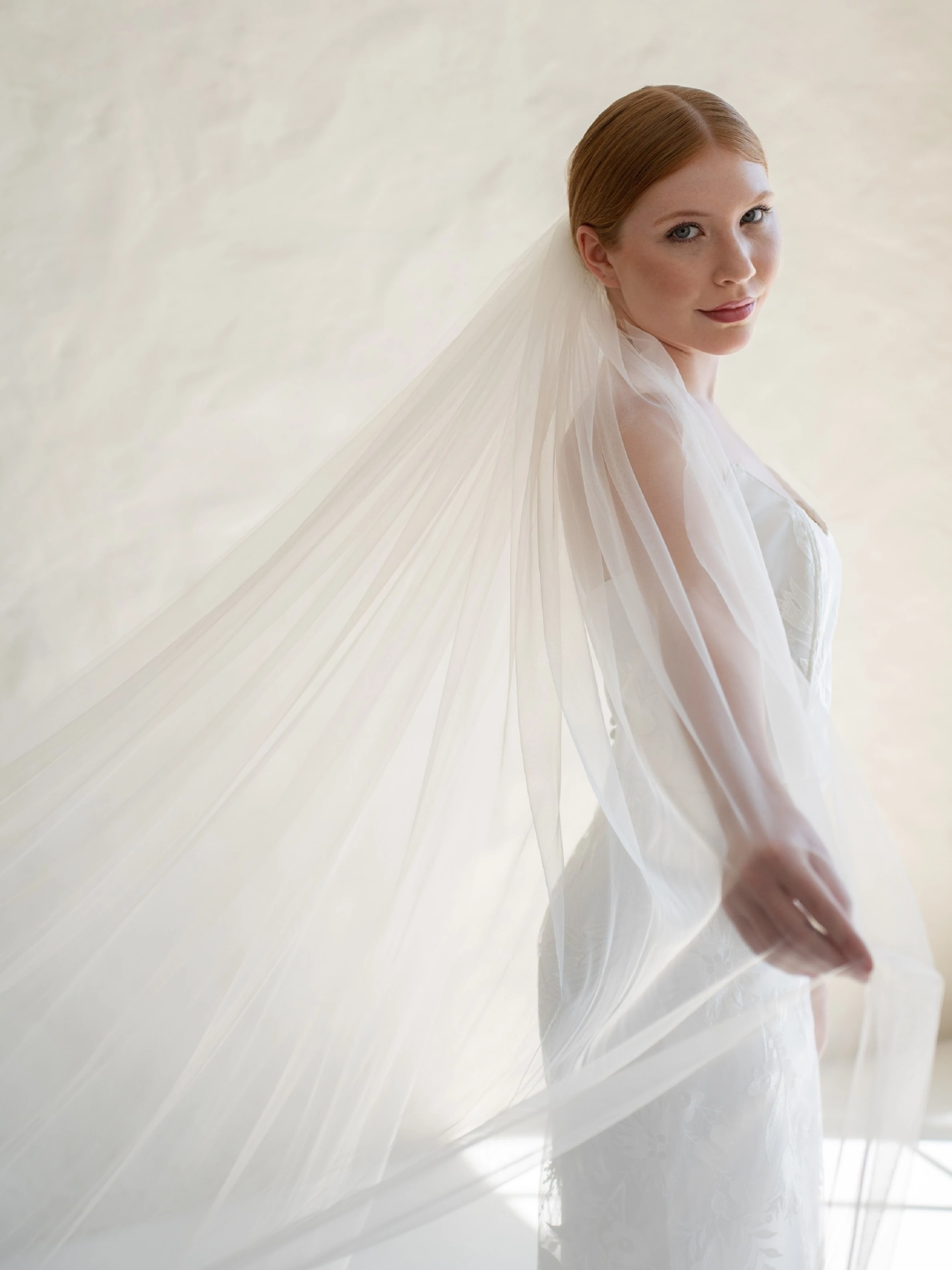 Ez a prémium minőségű dús, sűrű tüllből készült menyasszonyi fátyol gazdag esésével és lágy tartásával tökéletes választás azoknak, akik klasszikus mégis látványos kiegészítőt keresnek nagy napjukra. A gazdagon redőzött tüll harmonikus, telt hatást kölcsönöz. Királynői stílusú megjelenés. Kontyhoz, félig feltűzött vagy kiengedett frizurához egyaránt tökéletes választás.