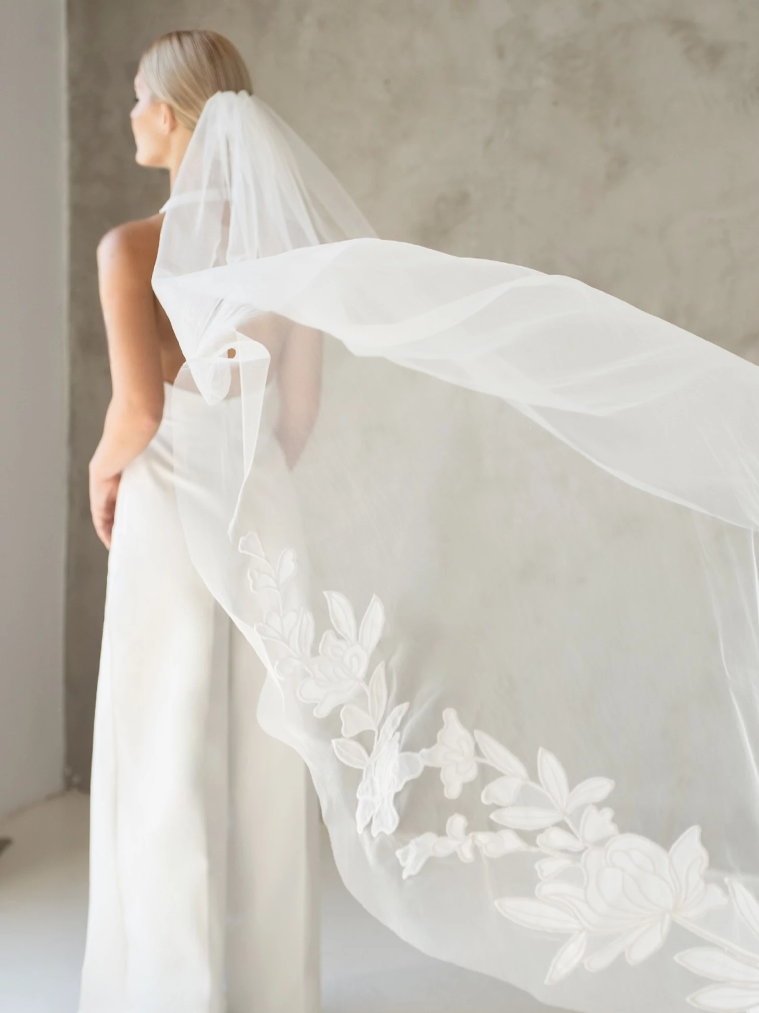 Mintha a rét virágai kísérnének! Hosszú, tüllfátyol organza virágokkal díszítve. Egyedi és modern, a látványos belépőhöz. A lágyan követő tüll uszály méltóságot ad minden mozdulatnak. Látványosan ékesít, mint egy ékszer. A fotózásokon a szélben megmozduló anyag varázslatos hatást kelt. Tökéletes választás minden menyasszonynak, aki a kifinomultságban látja a szépséget.