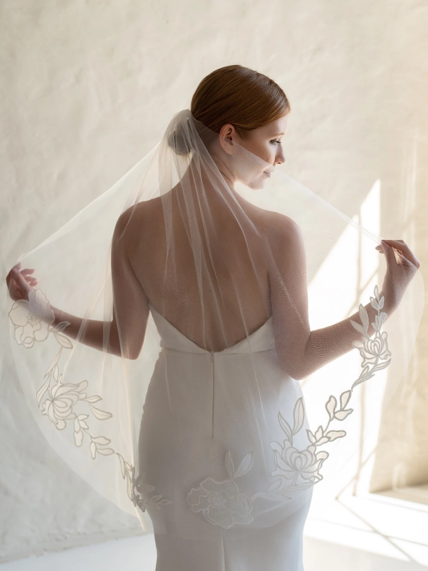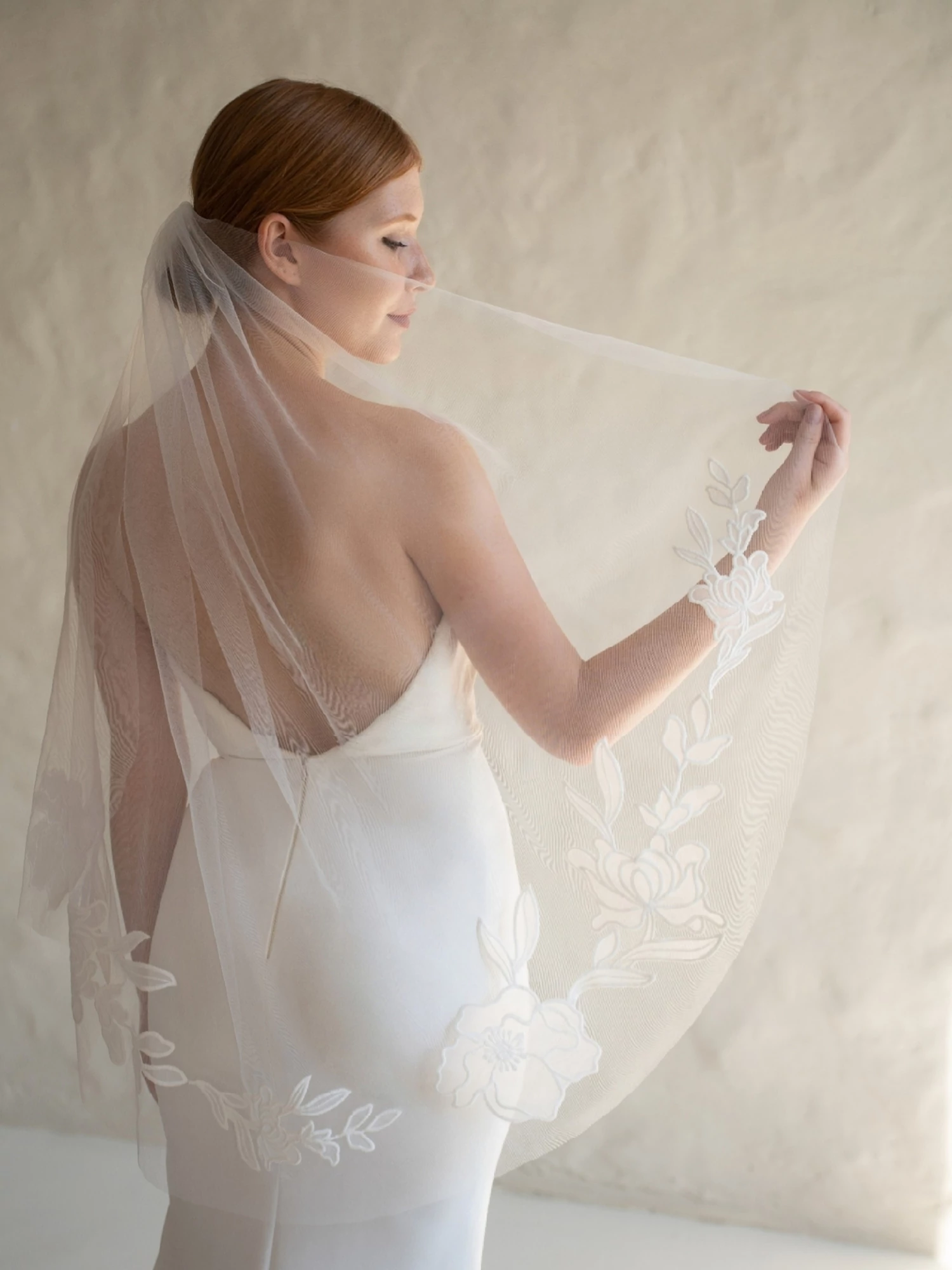 Légies tüllfátyol, melyet áttetsző organza virágok díszítenek. Különleges, mert egyszerre modern és romantikus. Tökéletes kiegészítő lehet egy letisztult stabású ruhához, mely teljessé teszi a megjelenésedet.