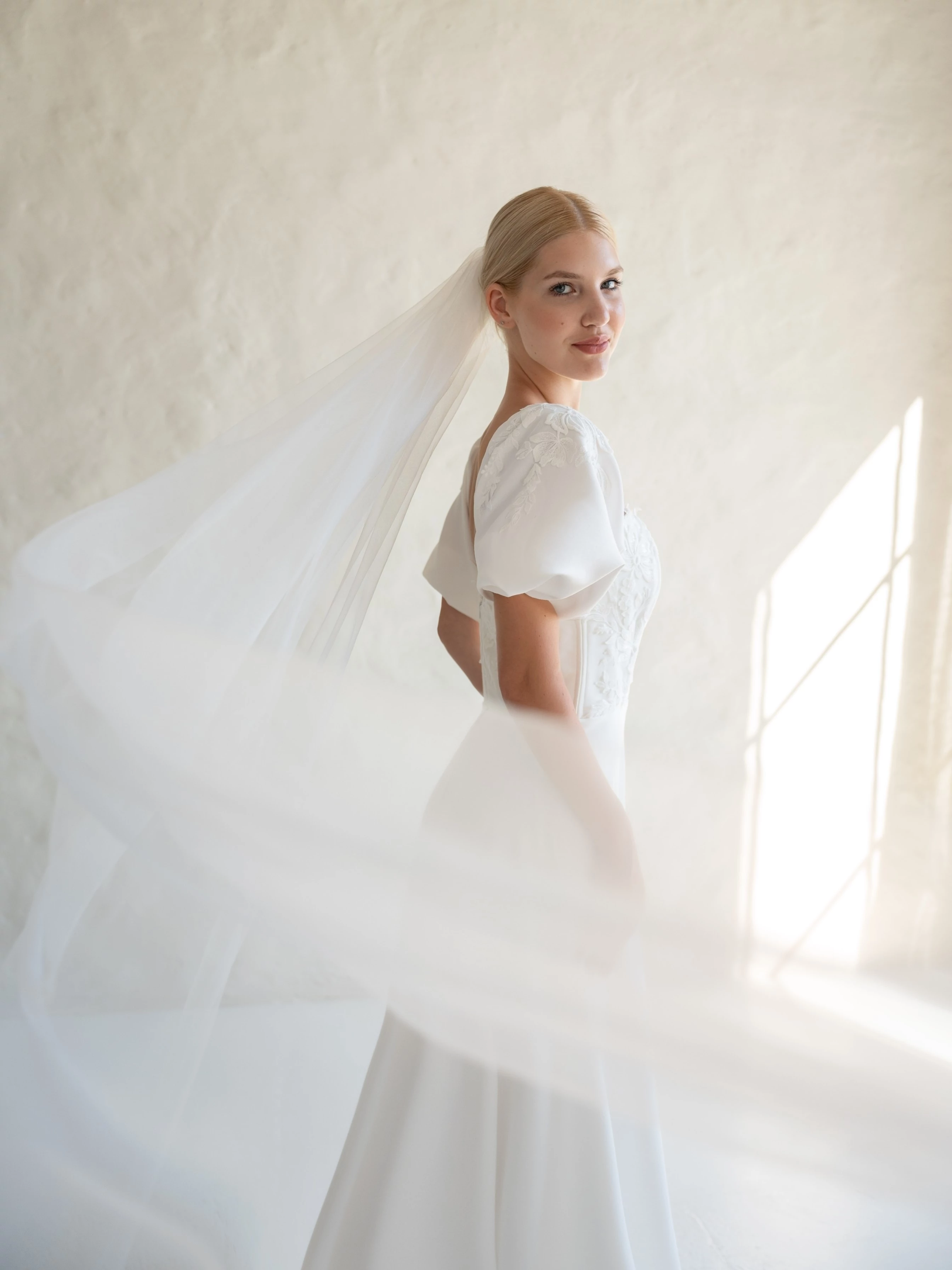 Tedd teljessé megjelenésedet ezzel a hagyományos darabbal! Időtlenül elegáns, légiesen könnyű fátyoltüllből, mely lágyan omlik a vállra és hátra. Klasszikus vonalvezetése bármelyik menyasszonyi ruhához illik, kiemelve a menyasszony természetes szépségét.